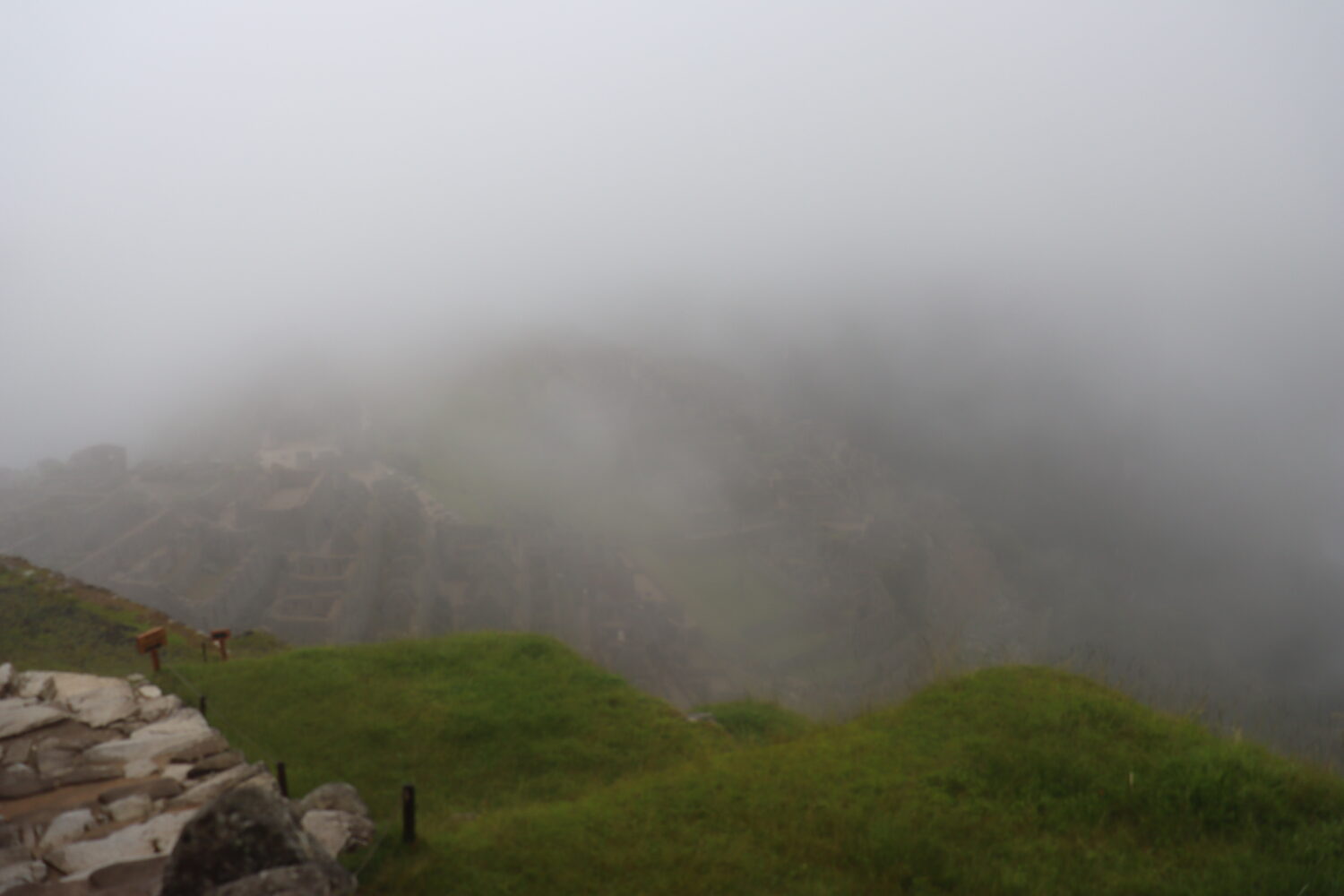 果てしない霧。目では見えるけど写真には何も映らん。流石に朝6:00のチケットは早すぎたか。とは思いつつも霧の中に見えるマチュピチュほど幻想的なものもありません。