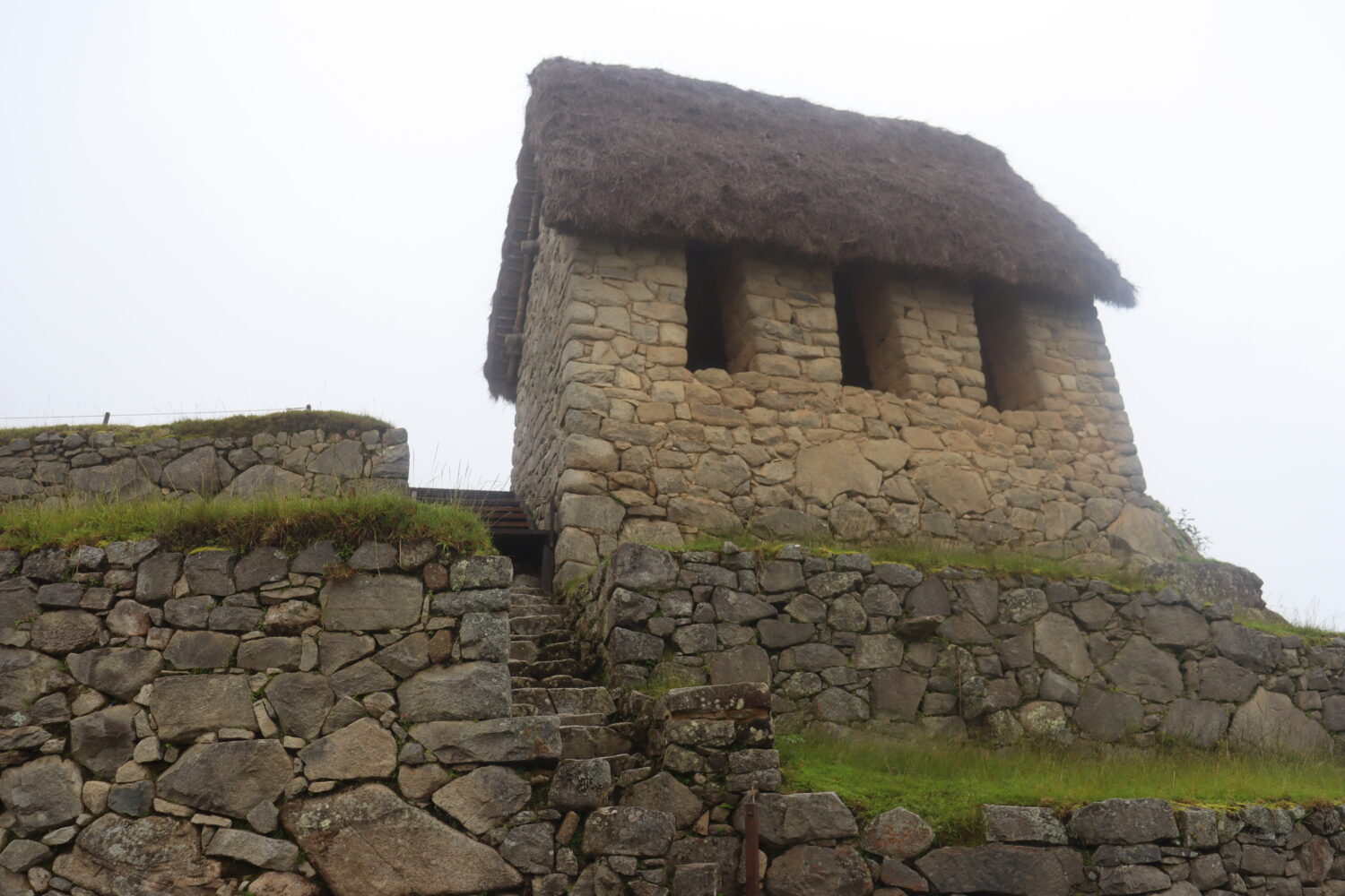 マチュピチュ遺跡全体からは少し離れた高台にある見張り小屋。ここの近くにはバリケードが貼られていて入れませんでいたが、この周辺からマチュピチュ遺跡を一望することができます。