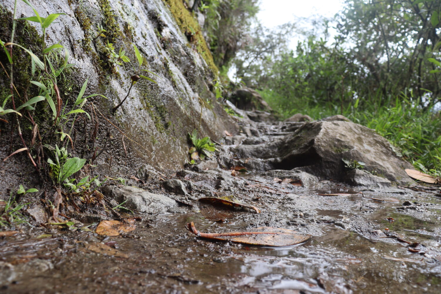 雨季で、急勾配の石の階段が濡れていてとても滑りやすくなっていて、少し油断すると転落なんてこともありえそうな状態です。