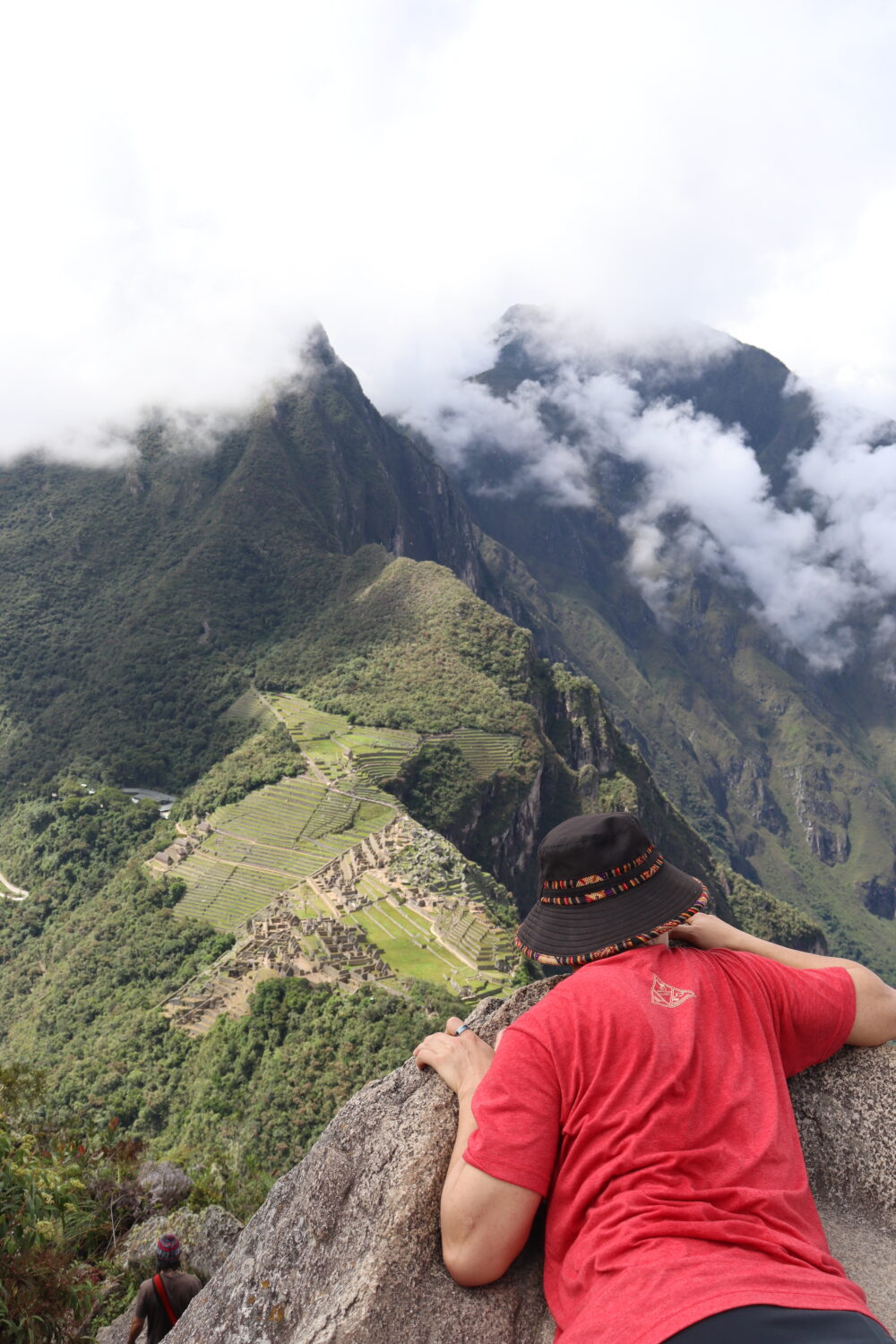 正直マチュピチュ遺跡は、見張り小屋のところから俯瞰することができるのでわざわざワイナピチュに上らなくてもいいかもしれませんが、高台からマチュピチュを見下ろすと、マチュピチュ遺跡が一体どういう場所にあるのかがよくわかり、なるほどこれは発見が遅れたわけだと納得しました。