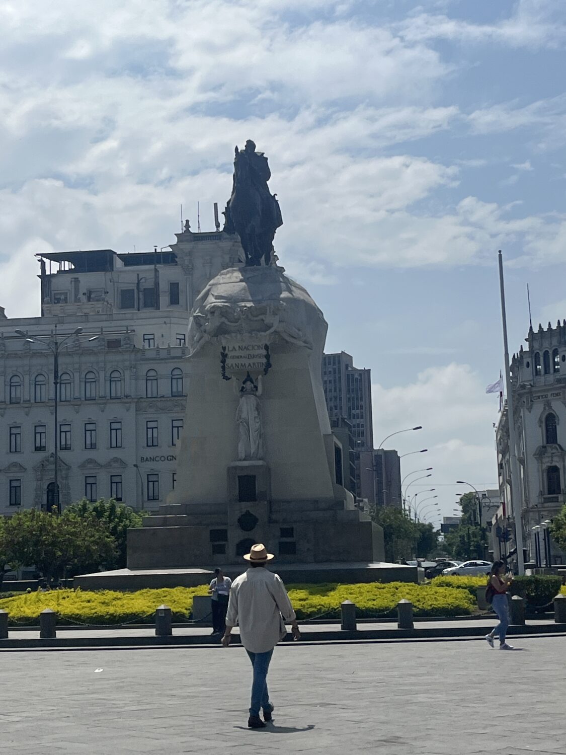 まず向かったのは、サン・マルティン広場。ここはペルー独立の父ホセ・デ・サン・マルティンの騎馬像が立っています。でかい。