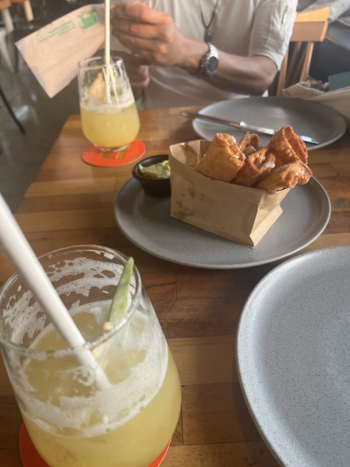 ハッピーアワーでお酒を二杯頼むとおつまみがセットでついてくるのでピスコサワーを注文。