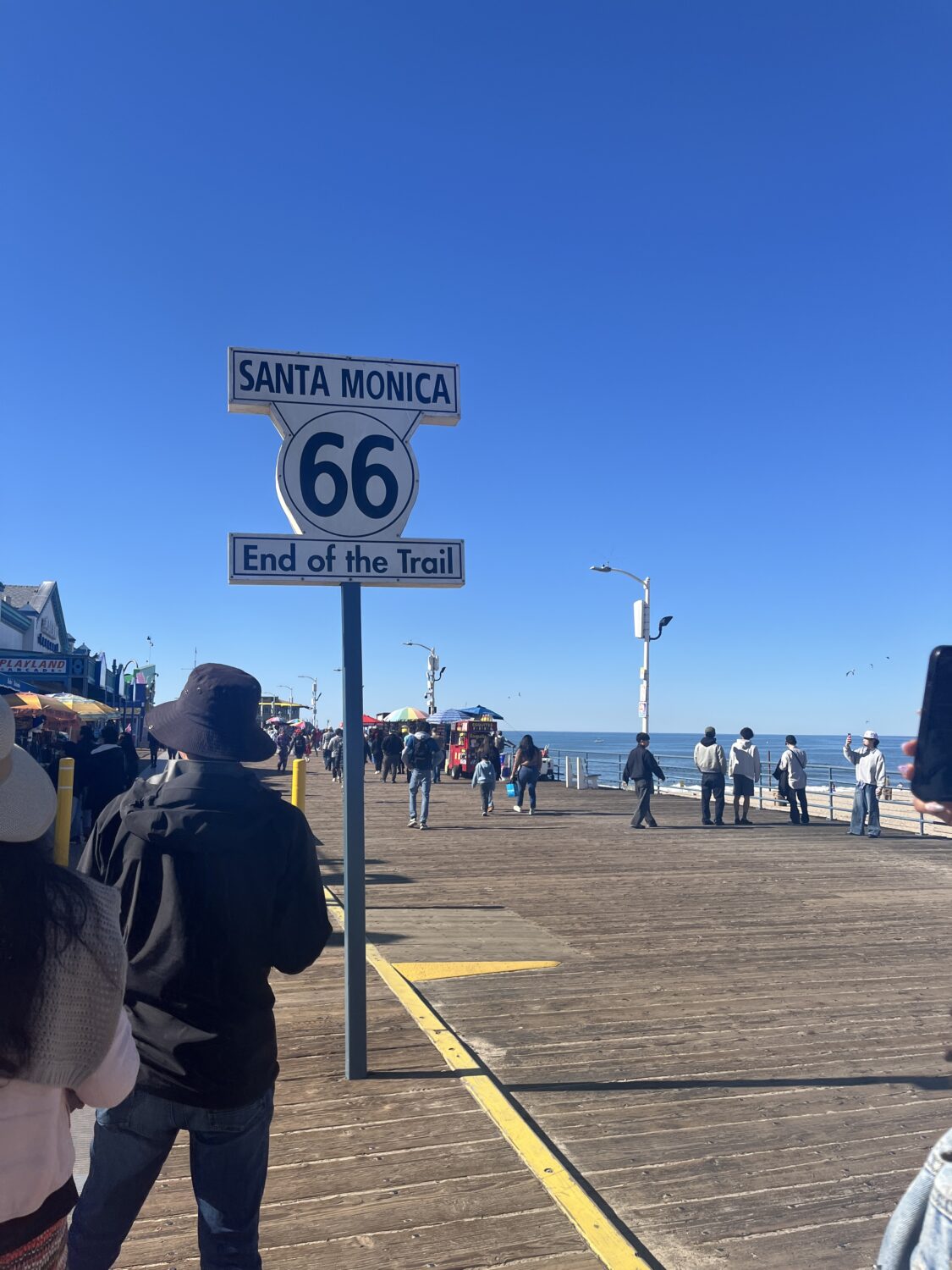 海の方に向かうと66番線の終わりの看板が。66番線がそもそもなんなのかよく知らなかったのですが、アメリカのいろいろな文化が生まれたのが66番線でその終わりだからということで観光地になっているんだとか。